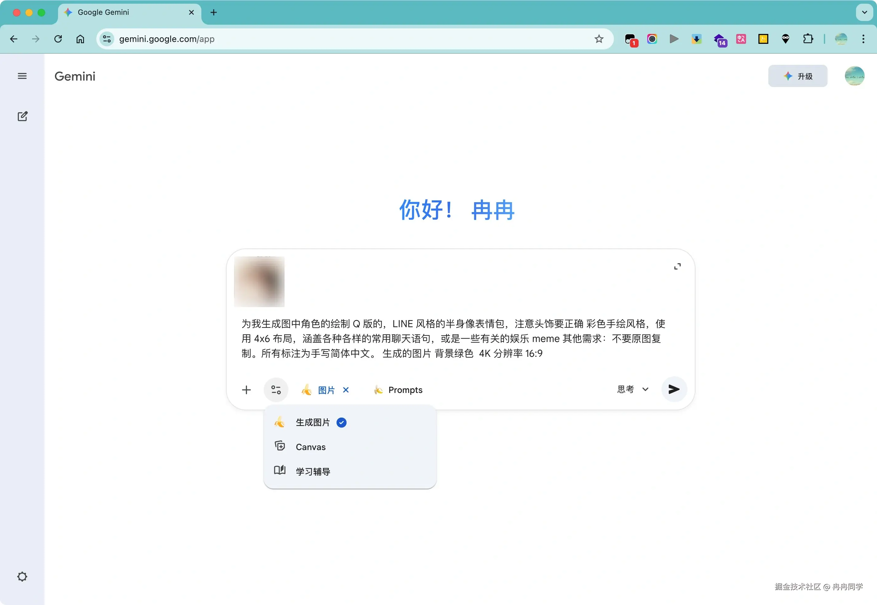 提示语和图片添加后,底部工具选择生成图片,右侧模型选择 思考,然后就可以点击思考旁边的小飞机提交生成了。