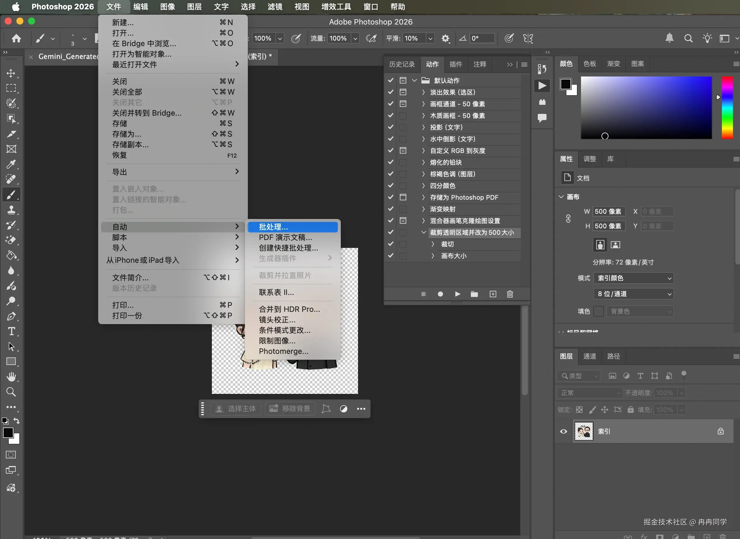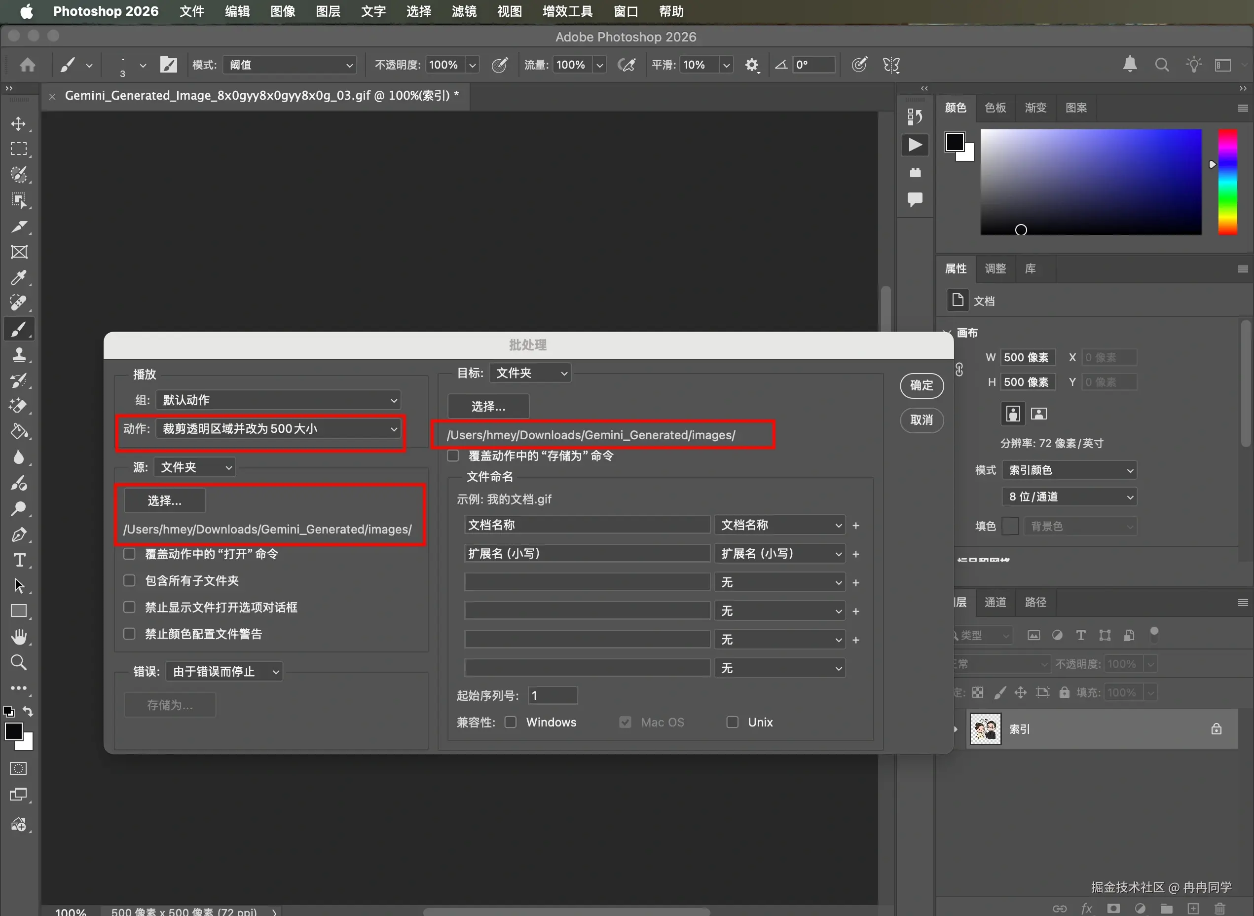 批量处理 录制好上面的步骤后,我们即可批量处理上面切好的所有图片