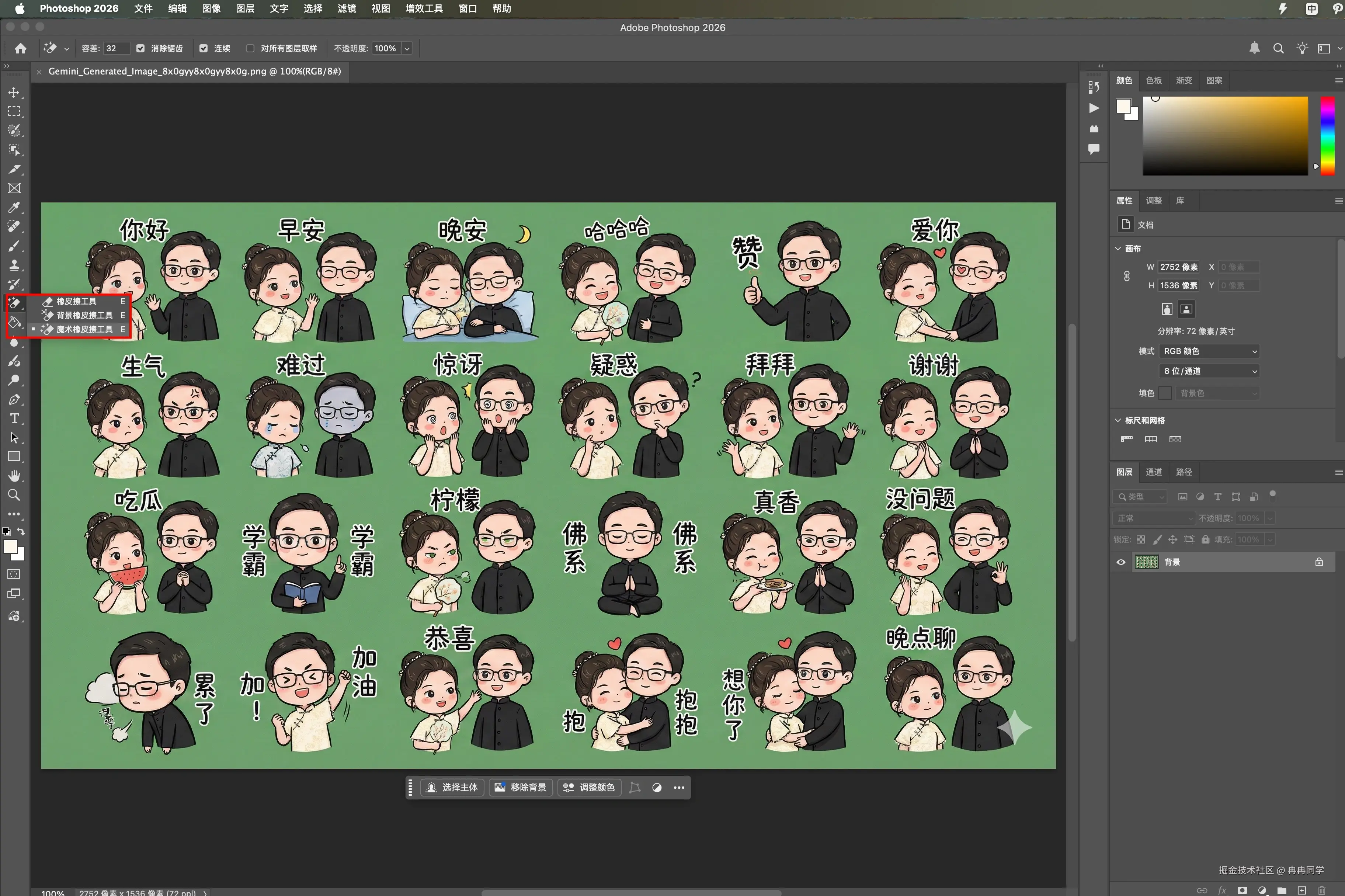 2.1 使用 Photoshop 魔术橡皮擦擦除表情包中的绿色背景