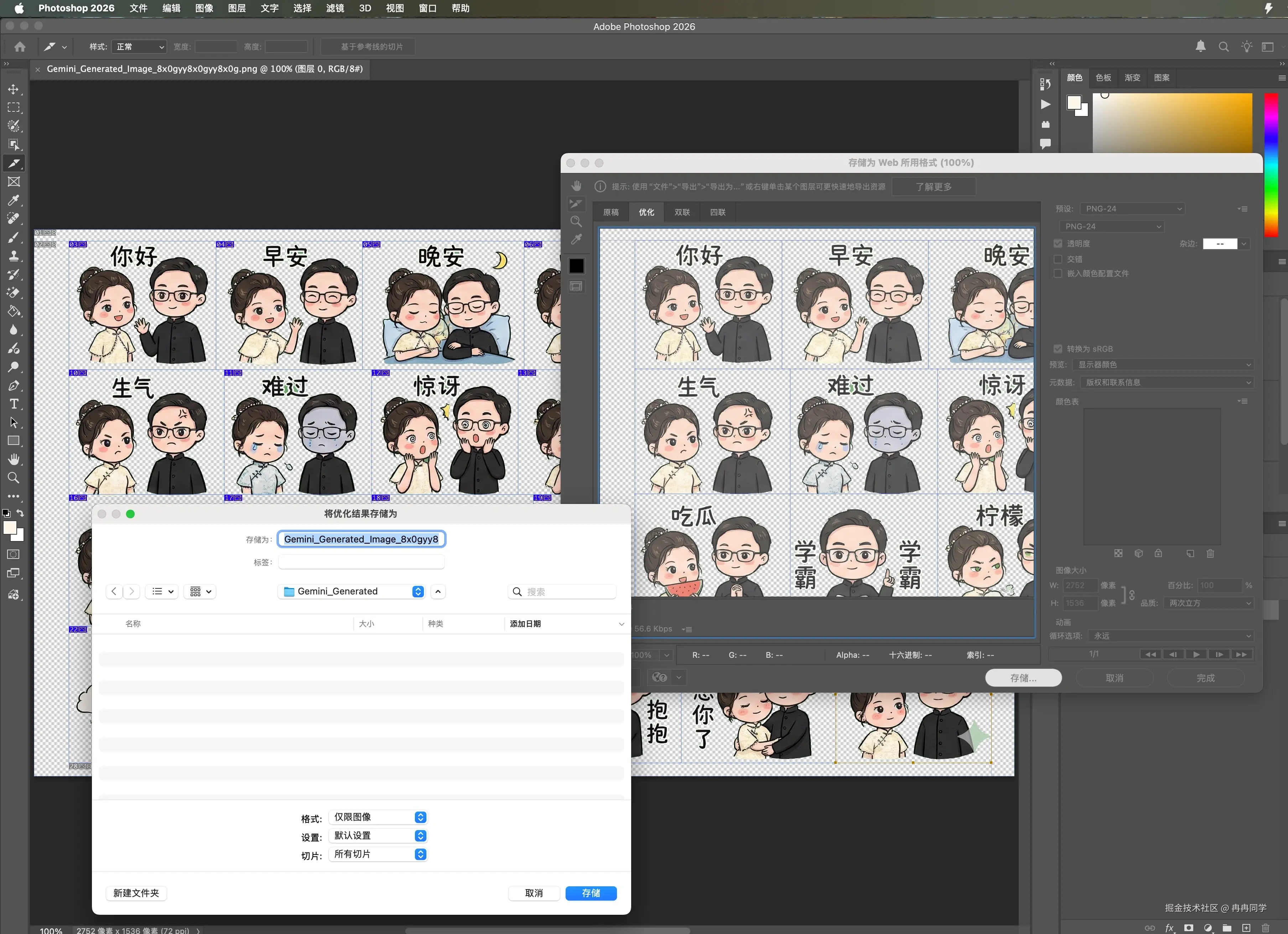 2.2 将透明底图表情包切片成 24 张单独的表情图片