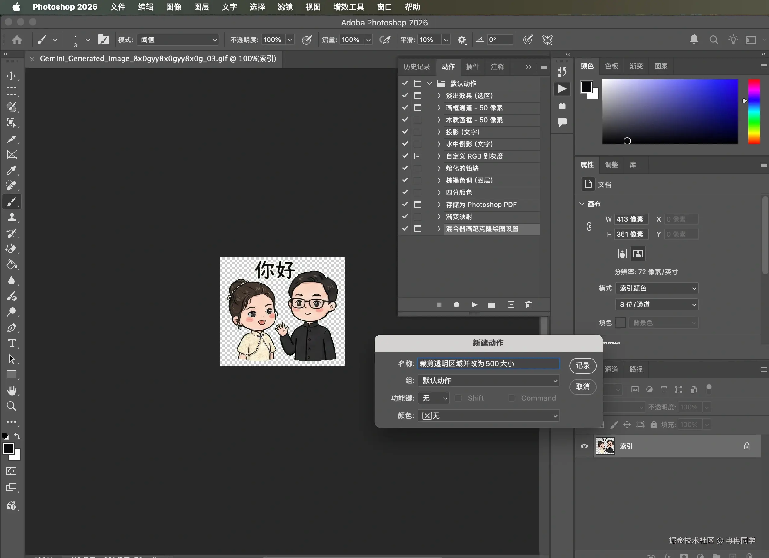 由于一张一张的裁切+调整画布比较繁琐,我们可以录制一个动作