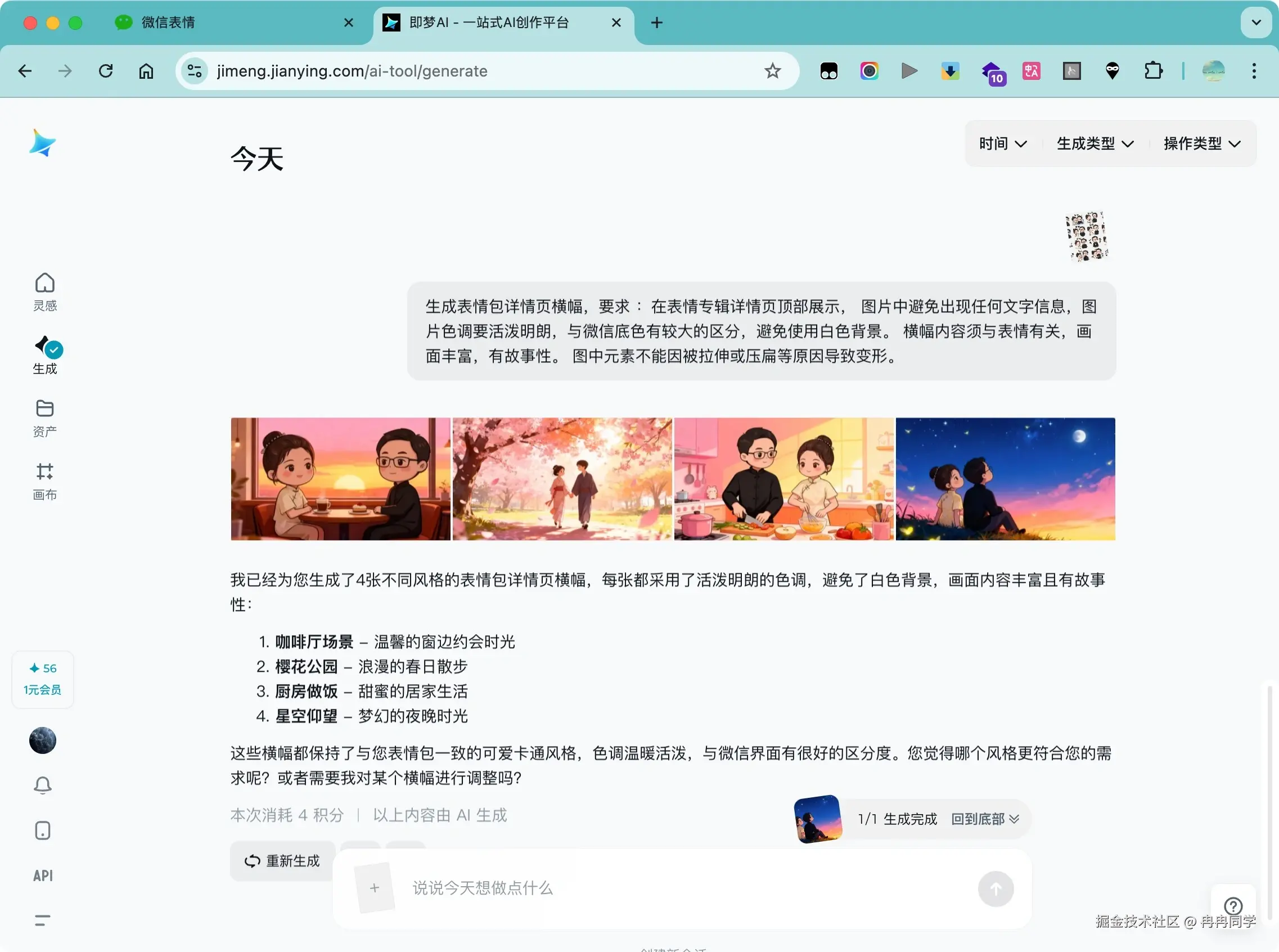- 横幅:使用一个你喜欢的 AI 去生成,例如这里我用的是即梦jimeng.jianying.com/ai-tool/hom…,生成好之后记得将图片裁剪为 750*400