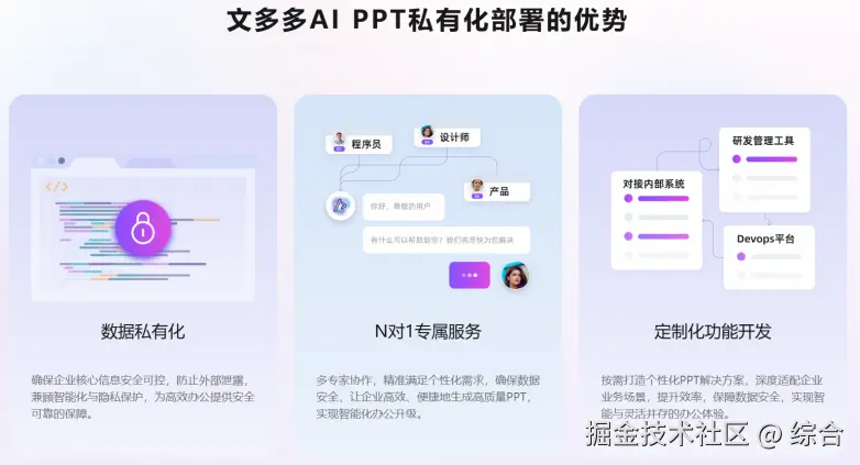 文多多 AIPPT 精准破解这一难题:依托技术专家全程指导+标准化部署手册,彻底打破技术壁垒,让私有化部署变得简单易上手。