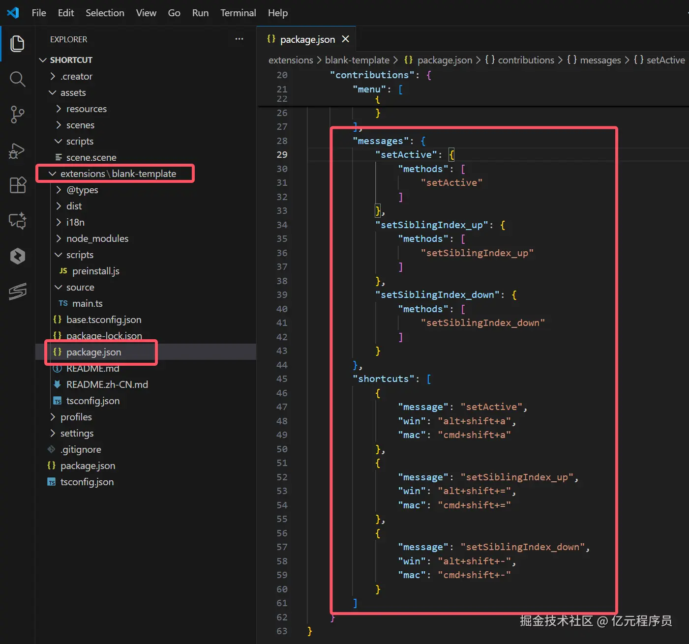 我们在插件的package.json中定义下面三个消息以及三个快捷键: