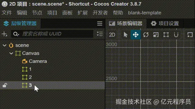 言归正传,本期带大家一起来看看,如何在Cocos游戏开发中,自定义快捷键实现显示/隐藏节点、调整节点的渲染层级。