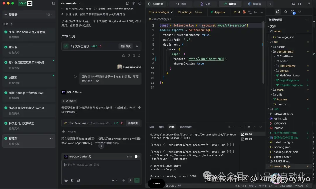 在这个项目中,我将分享如何使用Trae Solo开发一款功能完整的AI小说编辑器,包括技术栈选择、核心功能实现、开发过程中的关键节点以及最终的Electron打包与分发。