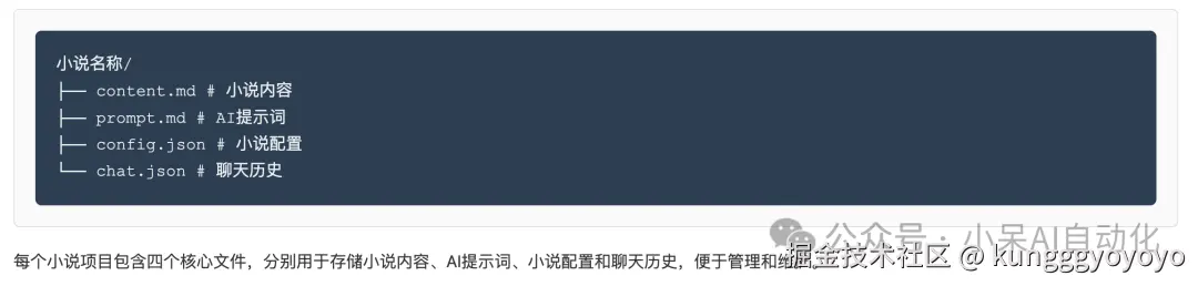 小说项目管理系统是编辑器的基础功能,它允许用户创建、打开和管理小说项目。每个小说项目包含以下文件: