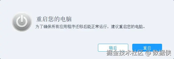 步骤4:迁移完成后,点击“确定”,然后重启电脑。