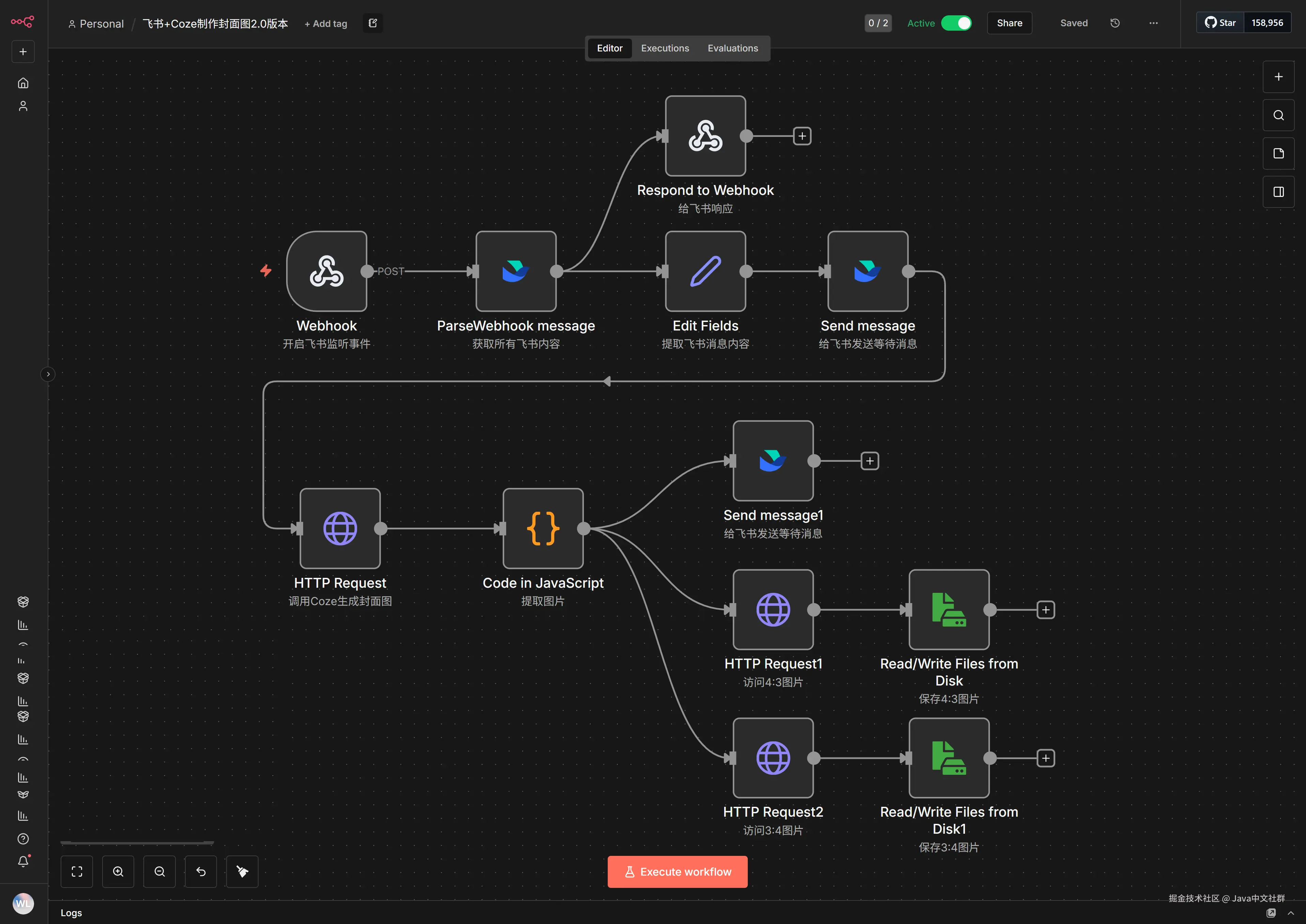 今天要给大家分享一个超级实用的干货——如何用 N8N、飞书和 Coze 画板打造一个完全免费的封面图生成系统!很实用,重点是整个流程实现高效、且零成本,真正的实现了封面图自由。