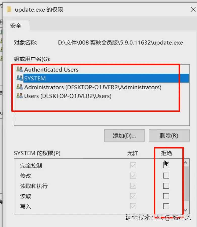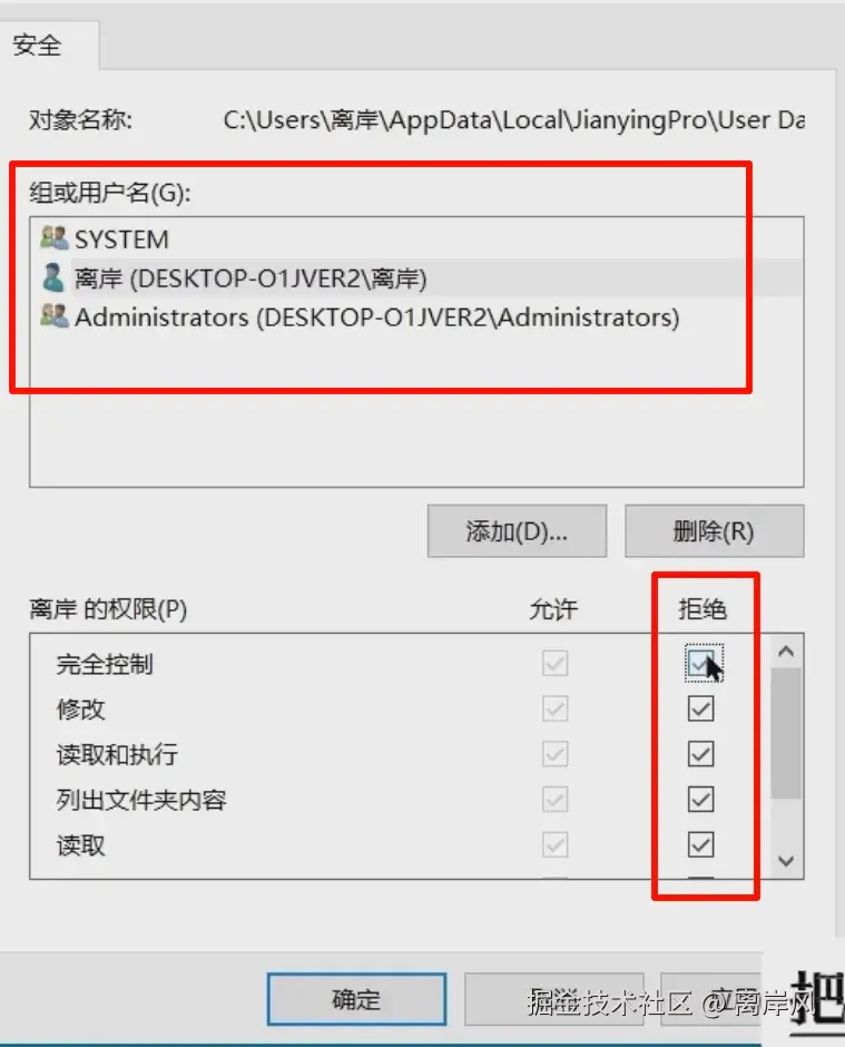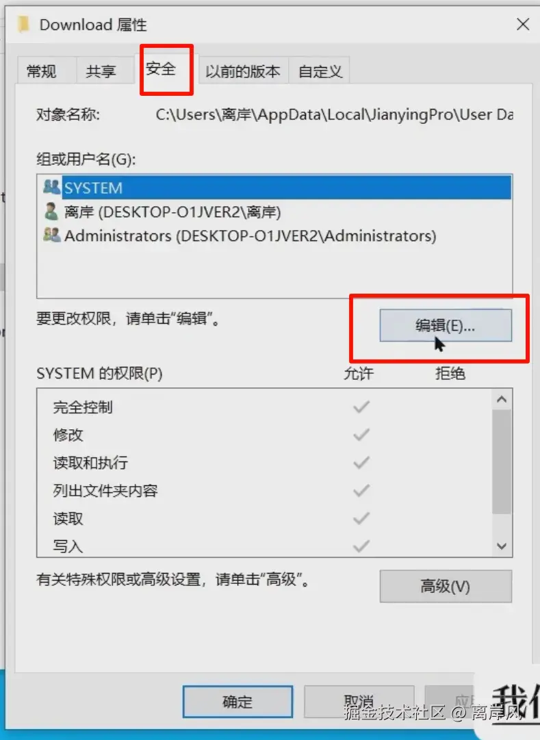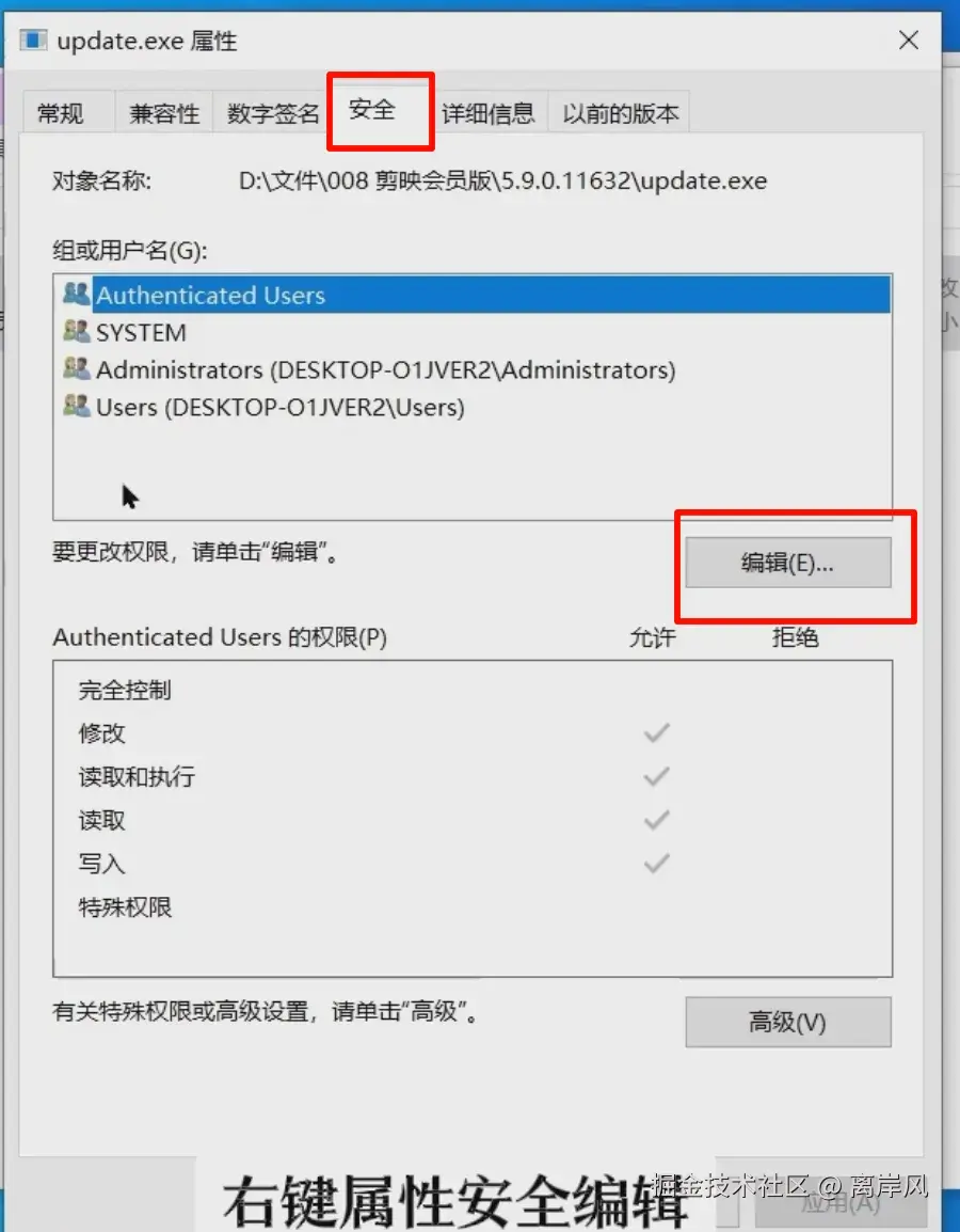 9.点击安全 - 编辑, 拒绝所有用户所有权限