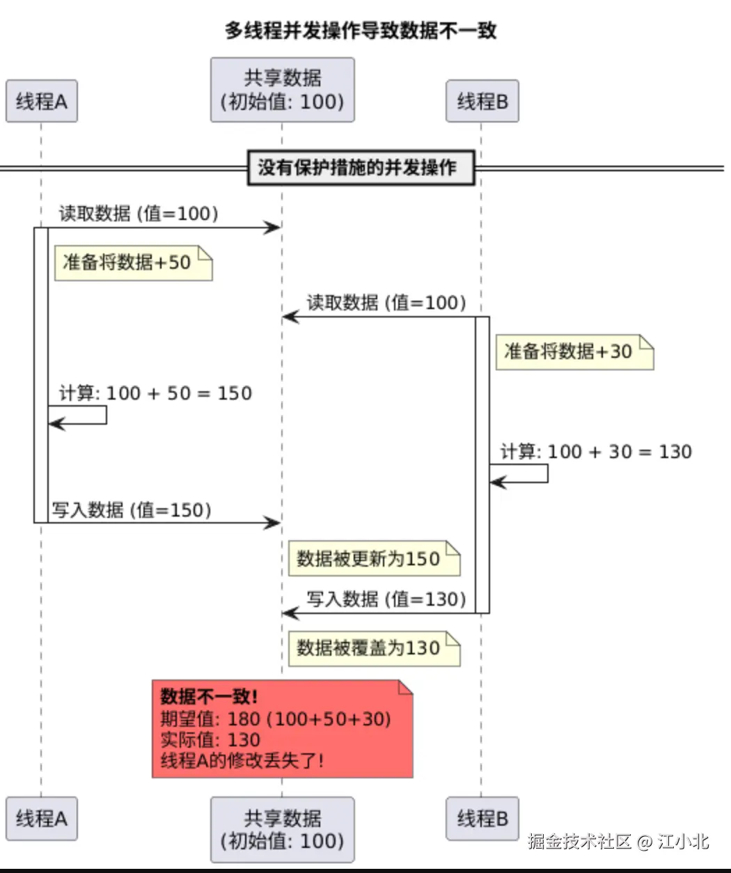 多个请求同时对同一条数据进行操作。如果没有任何保护措施,结果会是混乱的——某个线程还在修改数据,另一个线程已经开始读取,最后导致数据不一致。