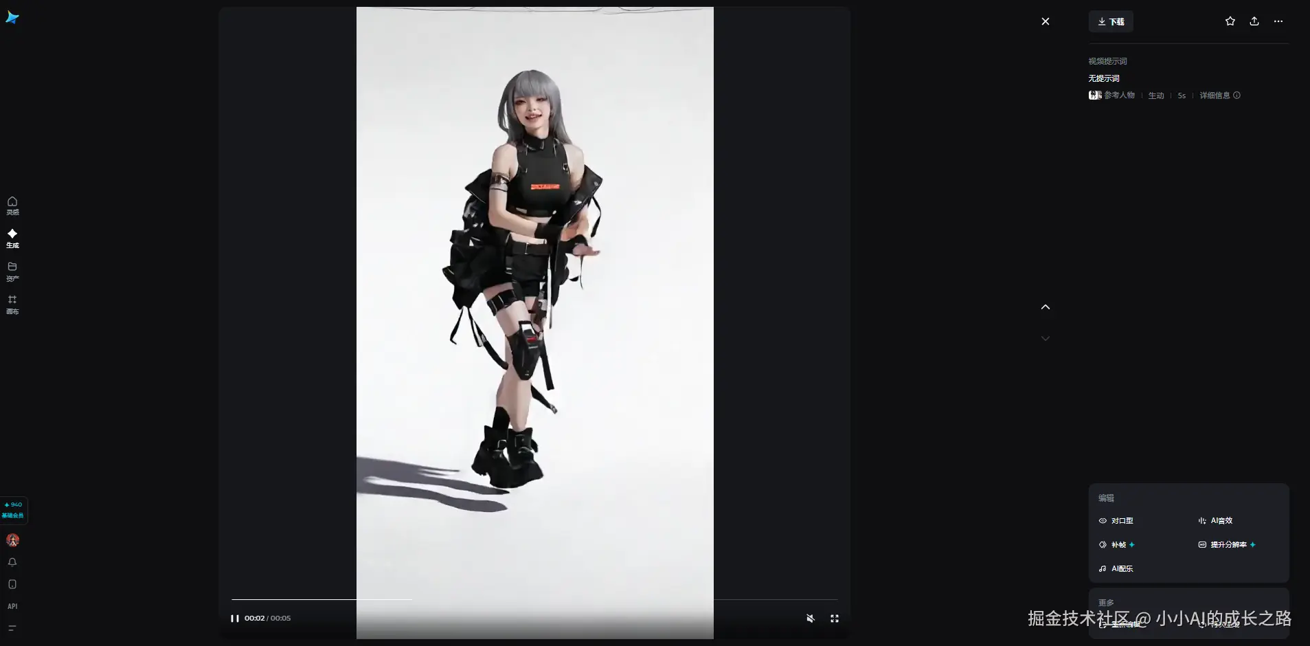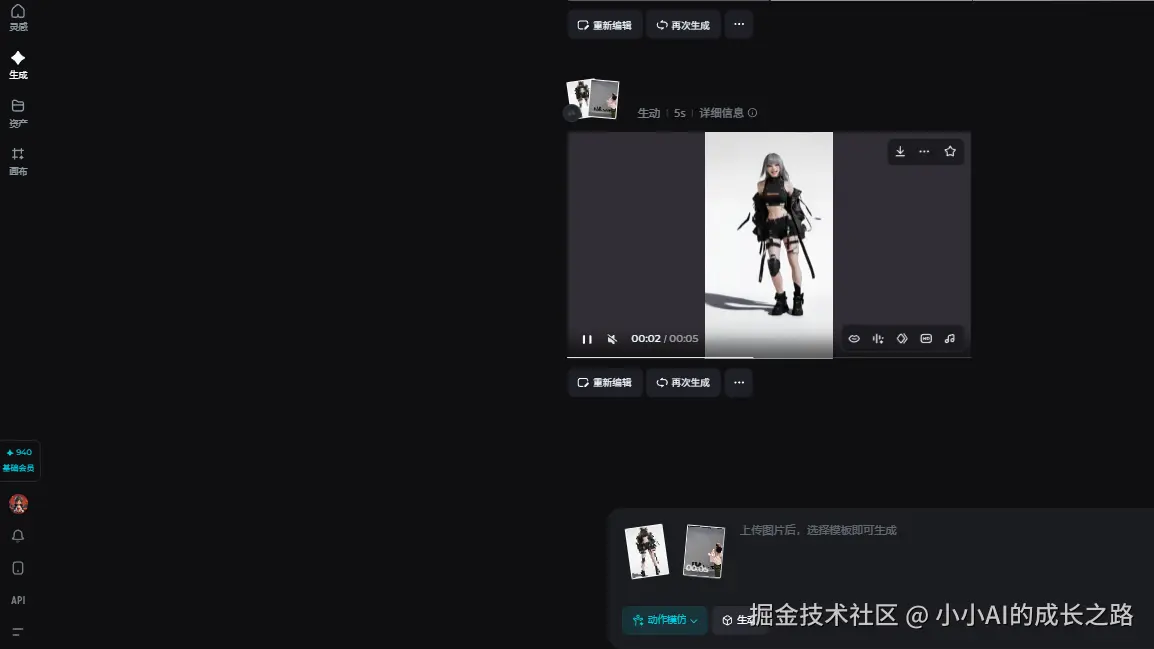 我上传了一段现代舞视频,搭配一张都市题材的角色设定图,点击生成