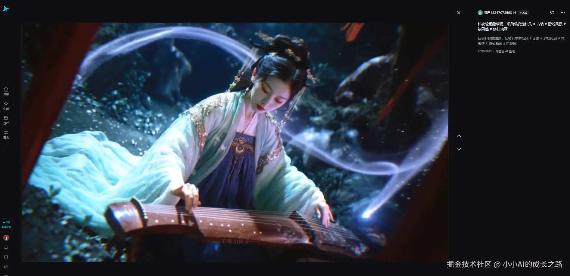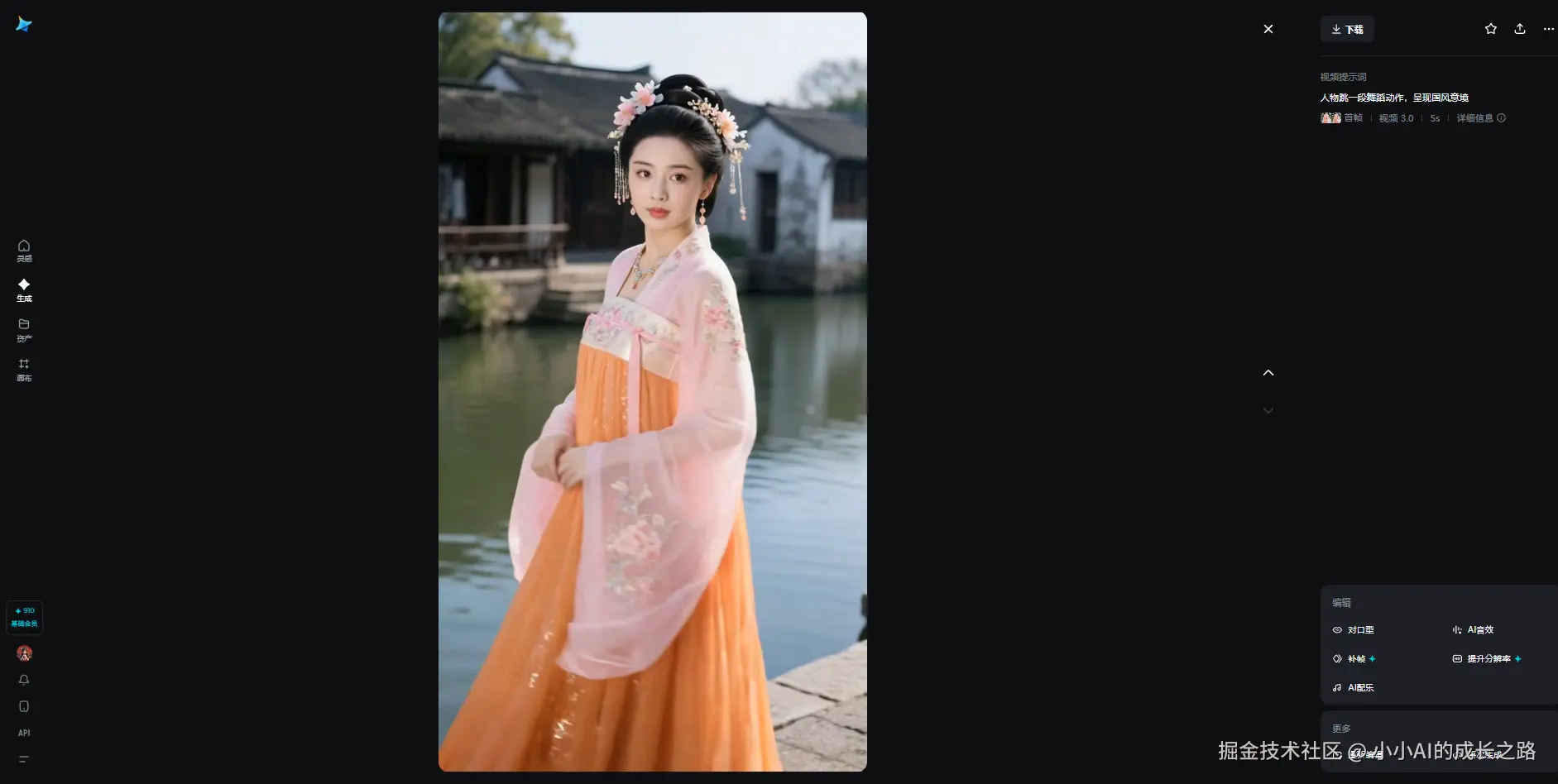 例如仅输入:“人物跳一段舞蹈动作,呈现国风意境”
