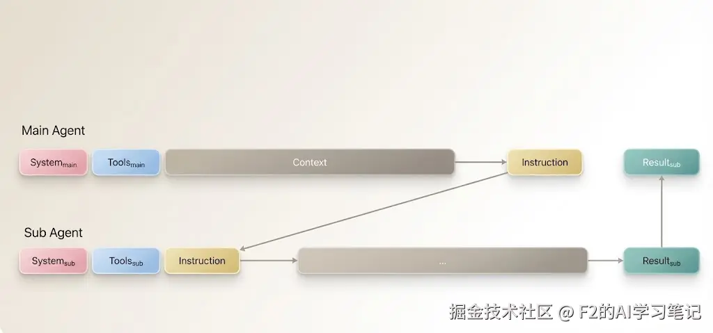 通信模式,指的是主智能体与子智能体之间通过消息进行协作的方式。其典型流程是:主智能体向子智能体发送一段提示指令,而子智能体的上下文中仅包含完成该指令所需的信息。