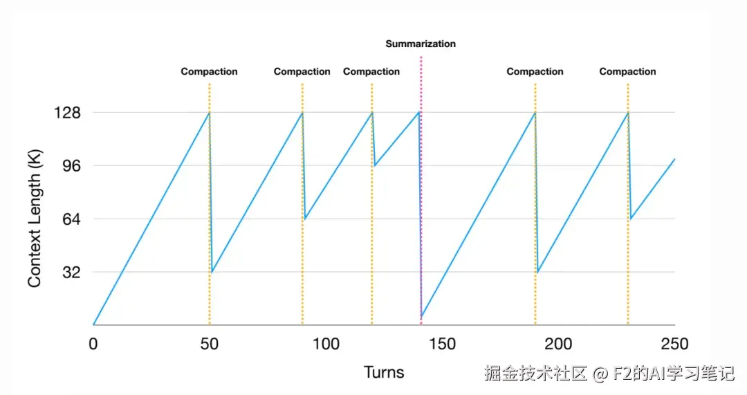 需要注意的是,压缩并非针对全部历史记录。一种可行的做法是:仅压缩最早期的50%工具调用,同时完整保留最近的调用细节。这样做既能有效缩减上下文长度,又能确保模型始终拥有最新、完整的工具使用示例作为参考。否则,若模型接触到大量不完整的压缩记录,可能会在后续行为中错误地模仿这种格式,导致调用时缺失必要字段。