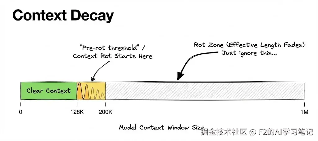 技术上,模型通常有1M token的上限,但大多数模型在达到该上限前就会出现性能下降。通常在处理约20万token时,就可能出现所谓的“上下文腐化”现象,表现为内容重复、推理速度减慢以及输出质量下降。
