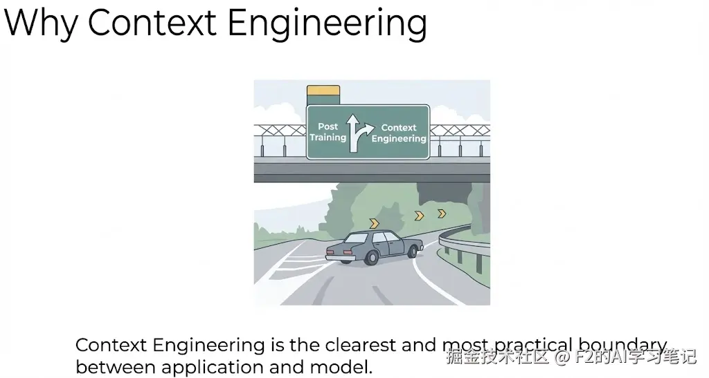 对于大多数应用开发者来说,“下高速”去往上下文工程 是更明智、更符合应用层开发逻辑的选择,而不是留在“后训练”的主干道上死磕模型训练。