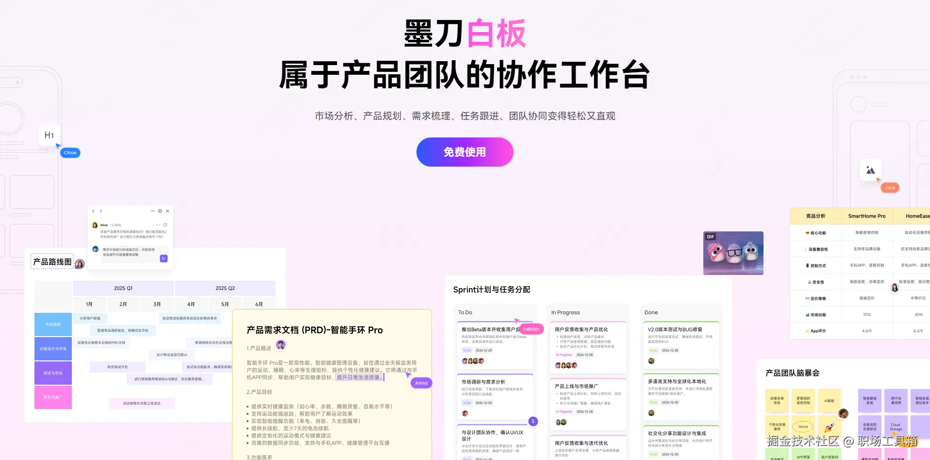 如果你下游是“前端开发”且用墨刀交付: 选墨刀白板。保持在同一个 URL 链接里,别让开发在不同应用间来回横跳。