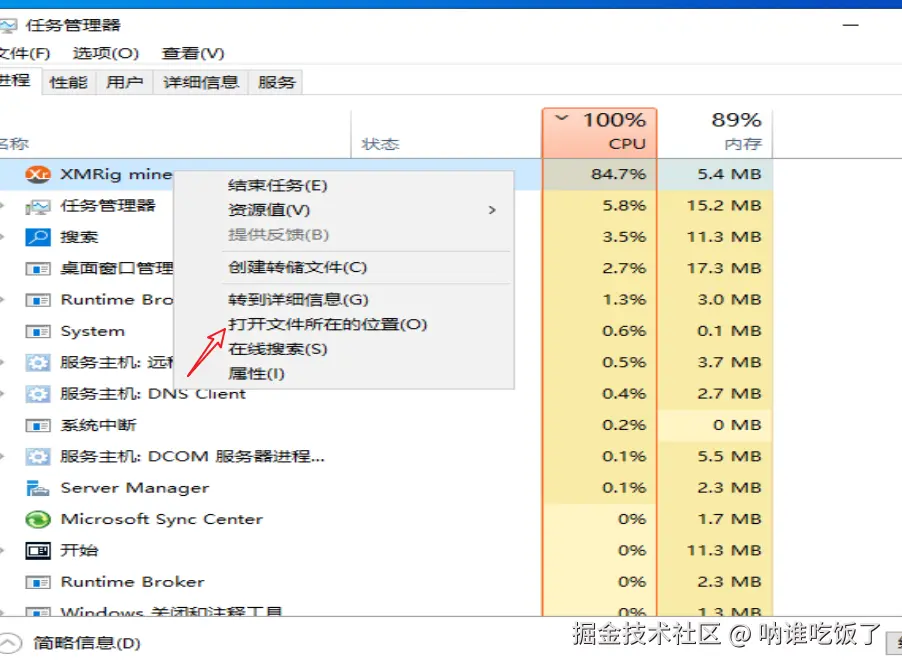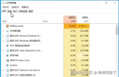 突然发现服务器卡顿严重,打开任务管理器发现CPU利用率100%。