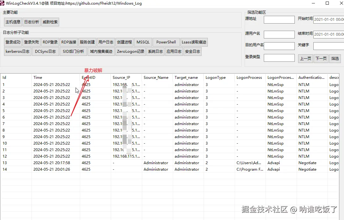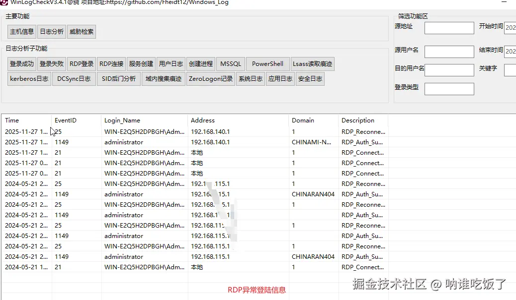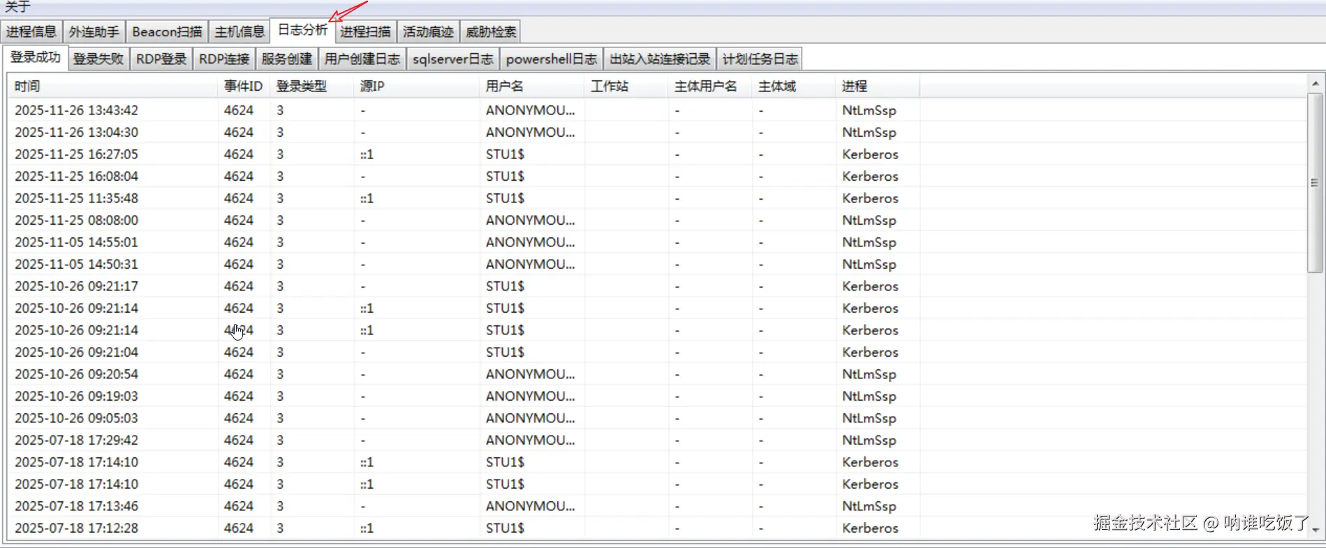 - 使用“日志查看器”查看安全日志,重点关注登陆失败(Event ID 4625)、登陆成功(Event ID 4624)以及Event ID 4720,4722,4725,4726。