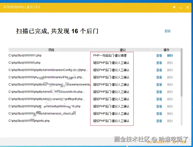 - 在服务器各个目录中,根据文件事件列表查找可疑文件