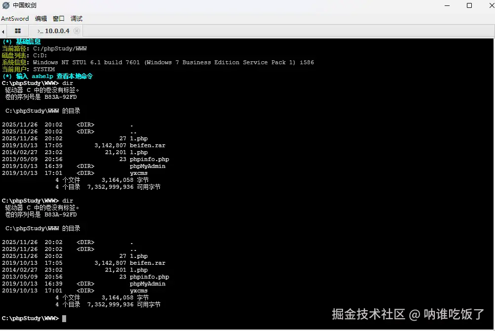 - 通过“systeminfo”命令查看系统信息、系统版本、补丁等信息