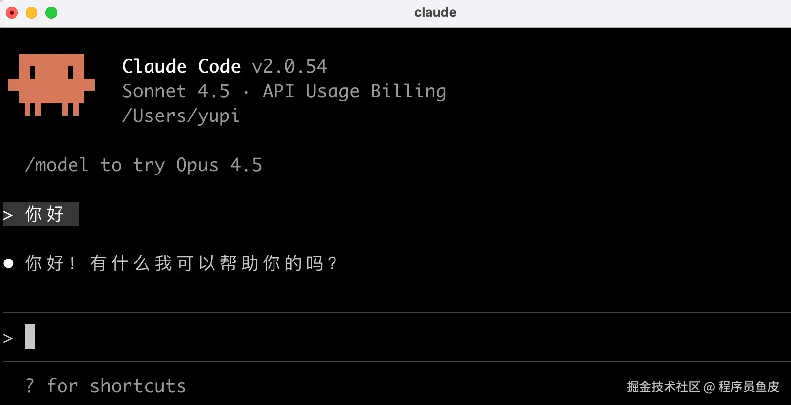 String content = zhiPuAiChatModel.call("你好,我是程序员鱼皮");