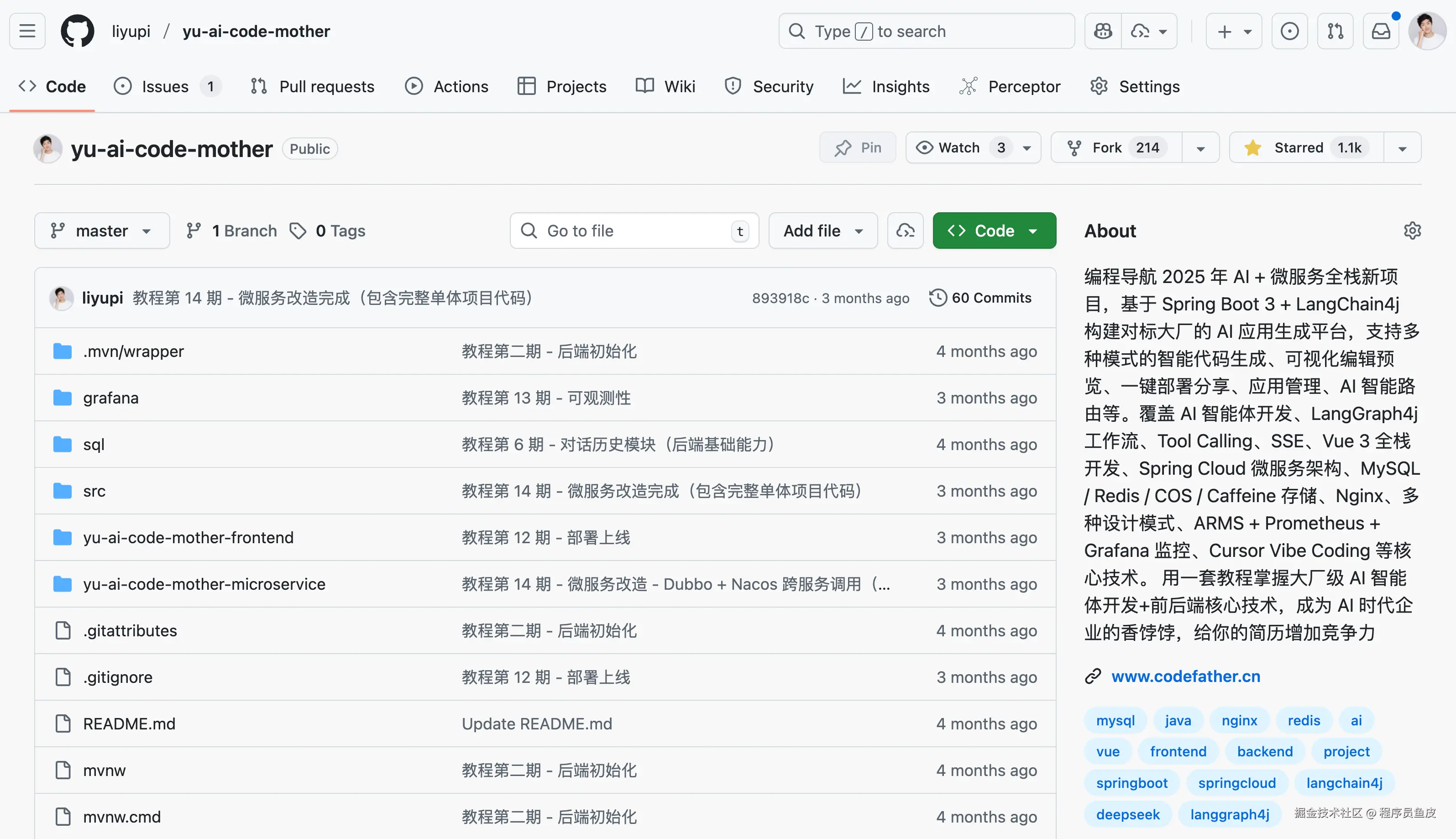 以我当时带大家从 0 开始做的、对标大厂的 AI 零代码生成项目 为例,这个项目使用 Java 主流的 AI 应用开发框架 LangChain4j。