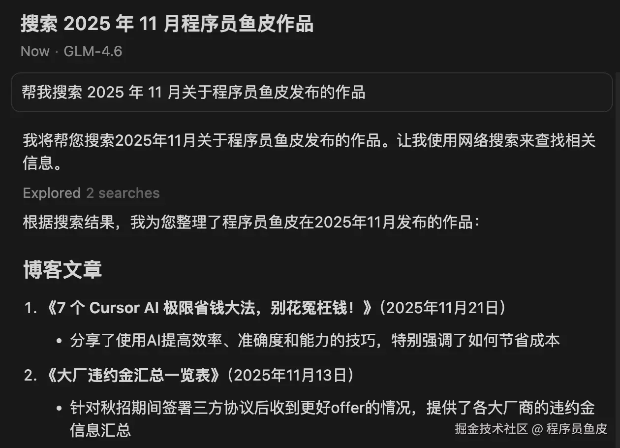 然后,就可以在对话界面选择 GLM-4.6 大模型,愉快使用了~