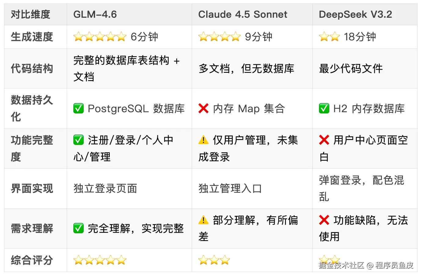 结果 GLM-4.6 不仅速度最快,而且功能实现最完整,理解了我的需求。