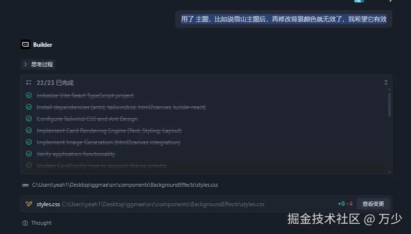 接着考虑到卡片需要酷炫的皮肤,我就开始让Trae帮我在已有的功能下添加功能。