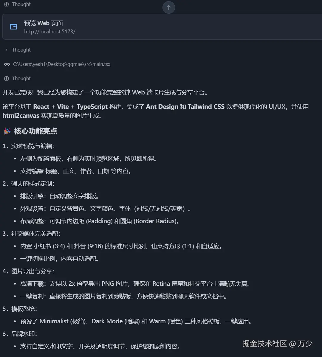 其实这个执行流程结束后,我的网站已经完成了 80%功能了,不得不感叹 gemini-3-pro-preview的强大,昨晚使用的时候,最多也是2、3个人开始排队,大家想要体验的就抓紧了。