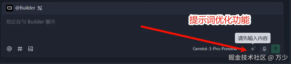 在国际版Trae对话框下,输入想要实现的内容,然后利用自带的提示词优化功能,得到以下信息: