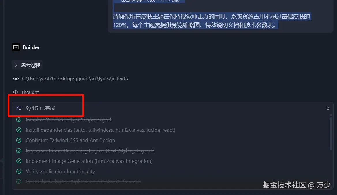 Trae一口气给我整理了15个步骤,可谓是思维谨慎的boy。
