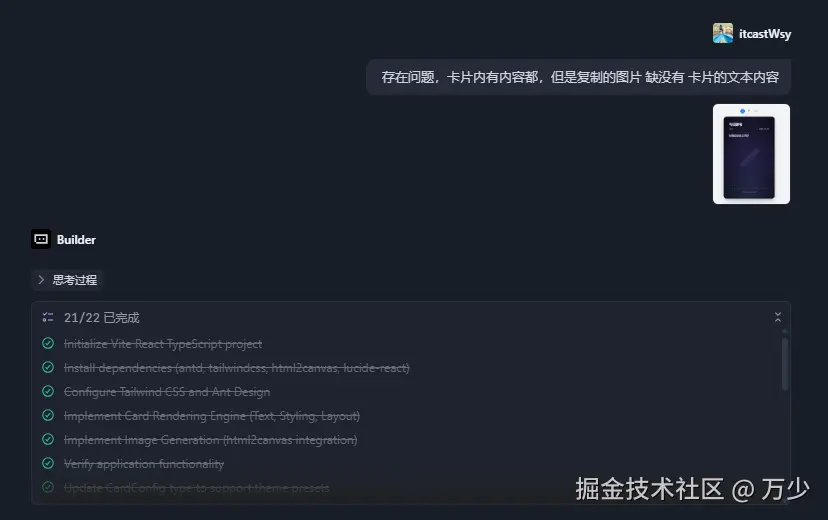 对话四:修复bug:存在问题,卡片内有内容都,但是复制的图片 缺没有 卡片的文本内容