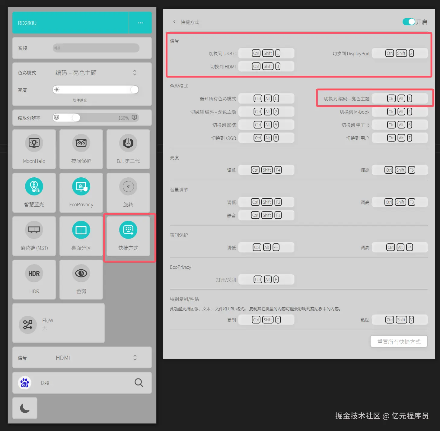 - 还可以设置键盘快捷切换信号和模式:很符合程序员的按键设定。