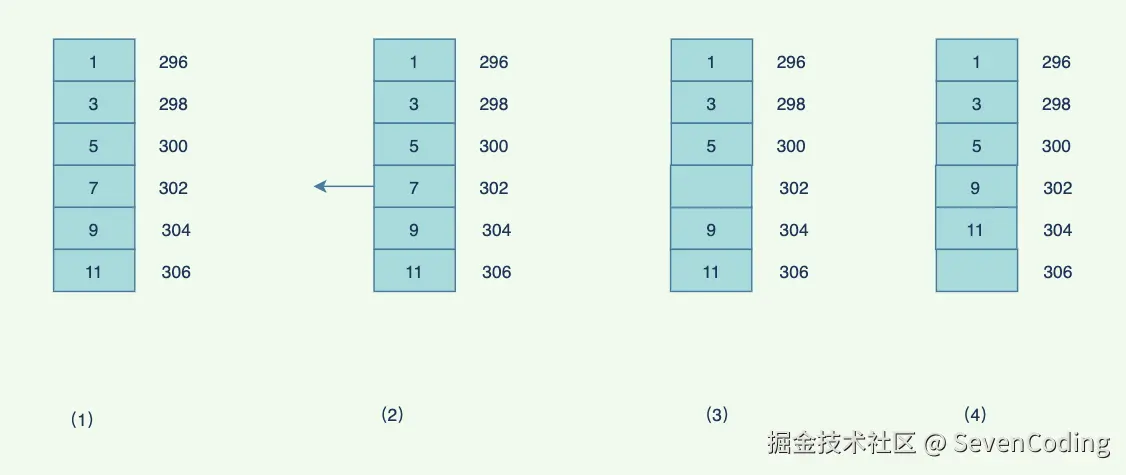 那如何删除⼀个中间的节点呢?下⾯是具体的过程: