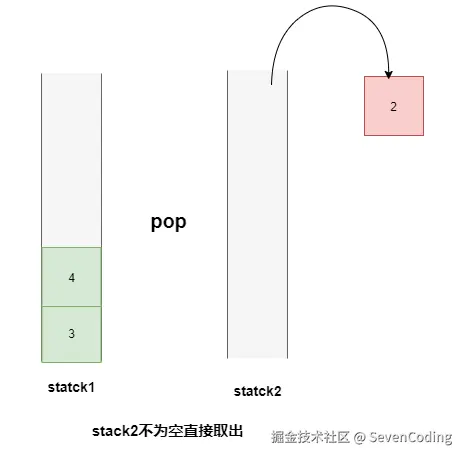 - 如果有新的数据进⼊,那么我们可以直接 push 到 stack1 ;