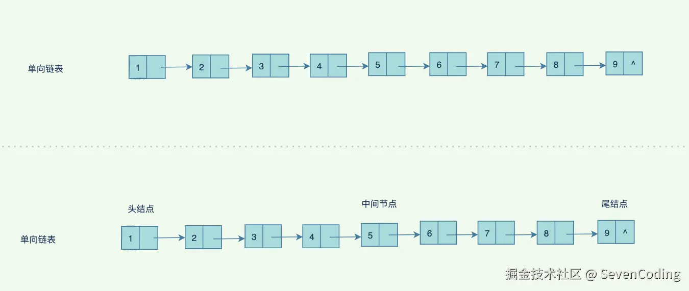 链表,也就是链式数据结构,由于它不要求逻辑上相邻的数据元素在物理位置上也相邻,所以它没有顺序存储结构所具有的缺点,但是同时也失去了通过索引下标直接查找元素的优点。