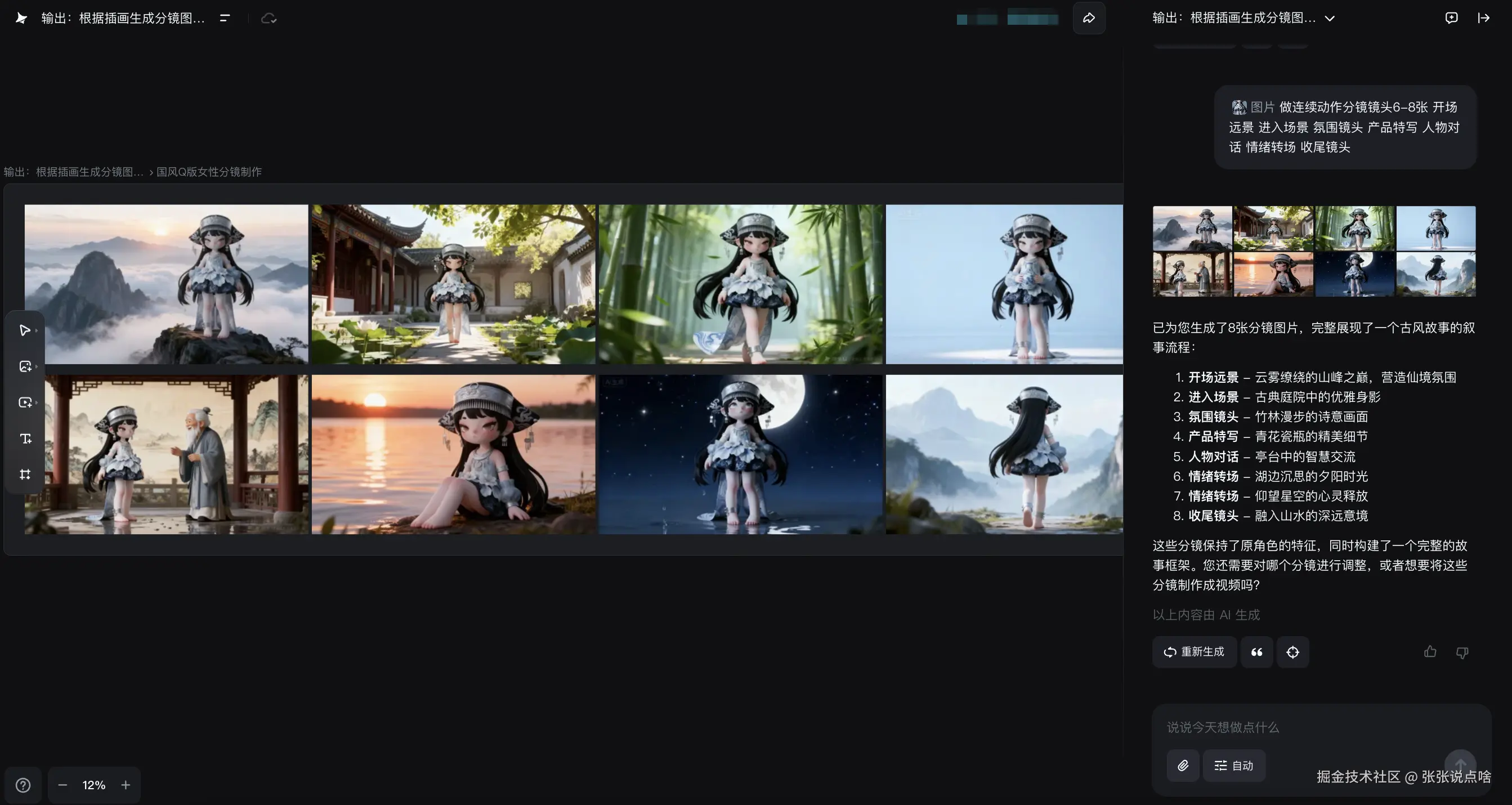 不再逐张生成,直接一次性生成成套连贯的分镜