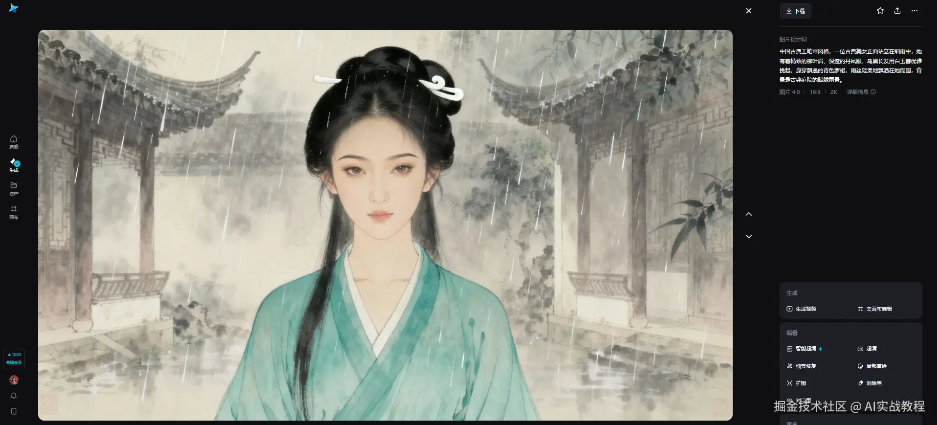 点击生成,1分20秒后拿到一段16秒的视频。我逐帧检查:脸部轮廓偏差小于2像素,簪子位置纹丝不动,连眼角的泪痣都稳定在第3帧出现。这种稳定性在以前需要人工逐帧修图三小时。