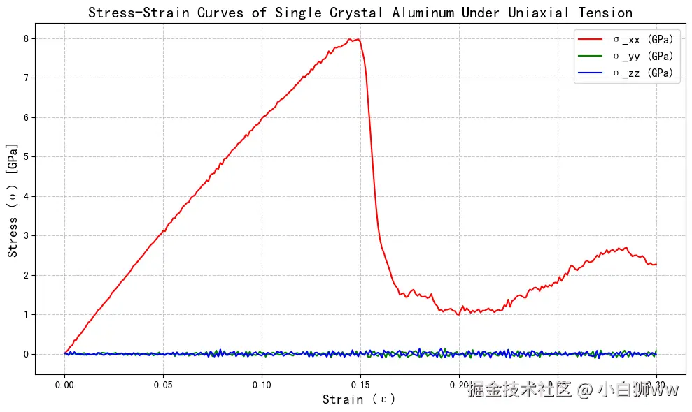 输入以下命令即可得到绘制的应变-应力曲线图。