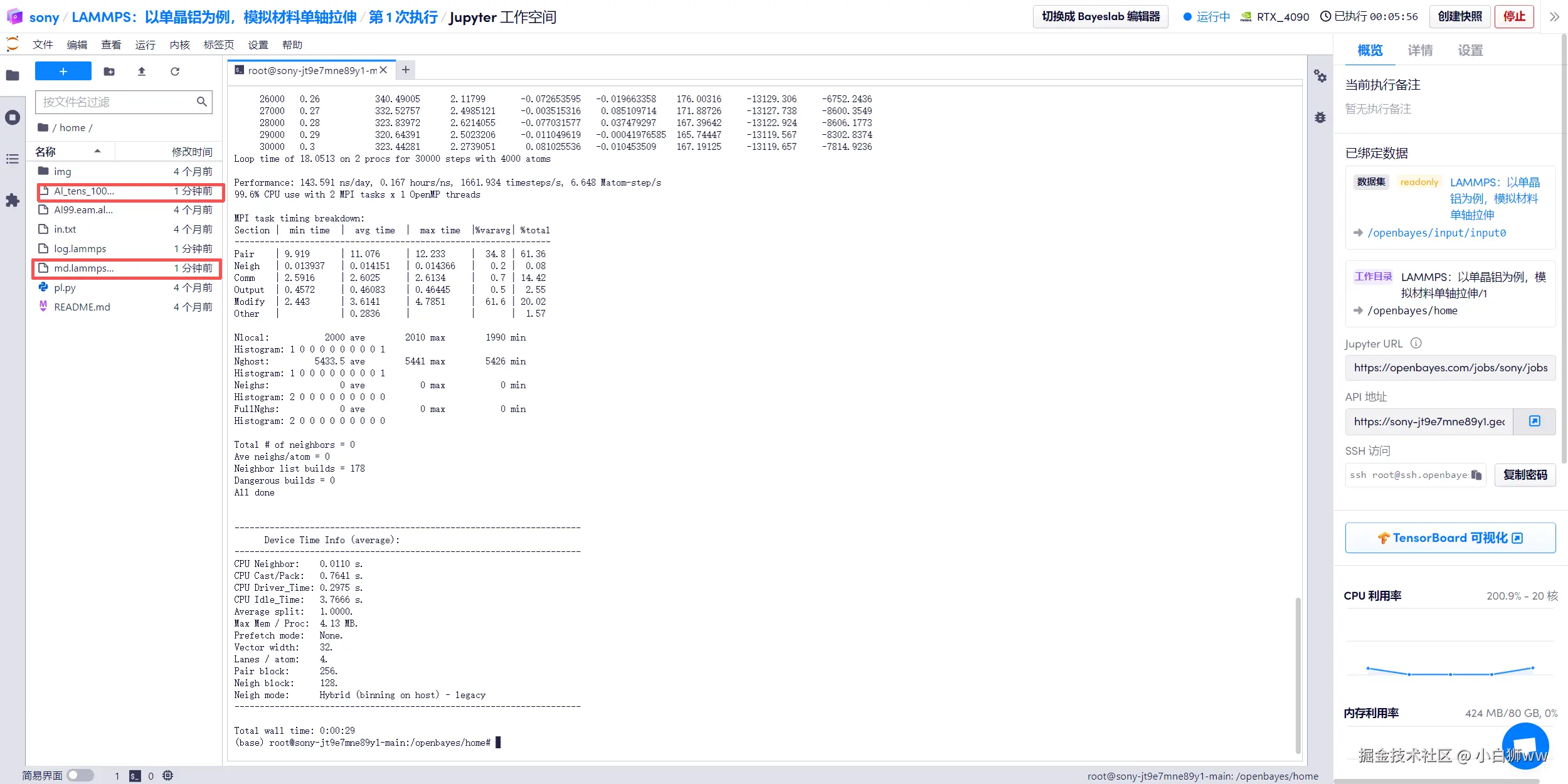 选择「NVIDIA GeForce RTX 4090」以及「lammps」镜像,OpenBayes 平台提供了 4 种计费方式,大家可以按照需求选择「按量付费」或「包日/周/月」,点击「继续执行」。可以使用文章开头的邀请链接,获得 RTX 4090 使用时长!
