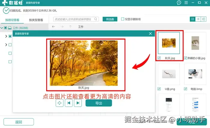 U盘里误删的文件哪里能找回来?该软件的扫描技术在业内处于领先地位,能够实现一键深度扫描,直达目标存储位置的底层,可以将里面被标记为“可覆盖”文件通过数据重组显示回来。如果需要扫描的文件为图片格式,软件还能支持内容预览,找回目标文件更为轻松。