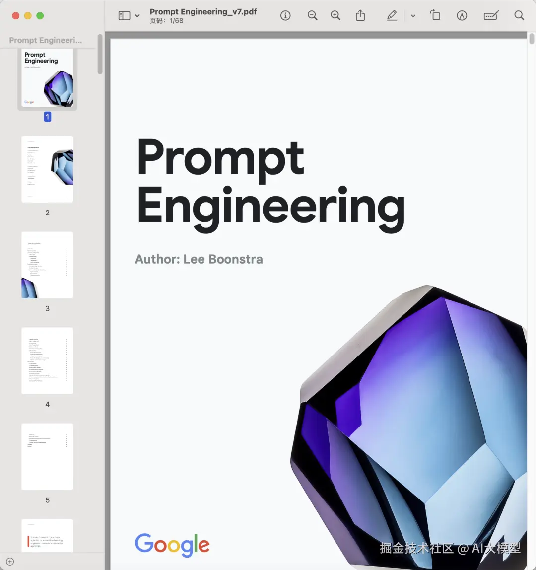 今天想和大家分享一份来自谷歌的技术白皮书《Prompt Engineering》,主题聚焦于“提示词工程”,长达68页的提示词指导。