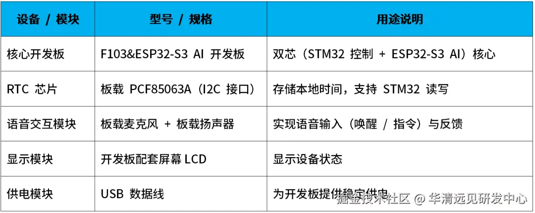 《AI语音校时器》项目硬件平台是华清远见STM32F103&ESP32-S3 AIoT开发板。