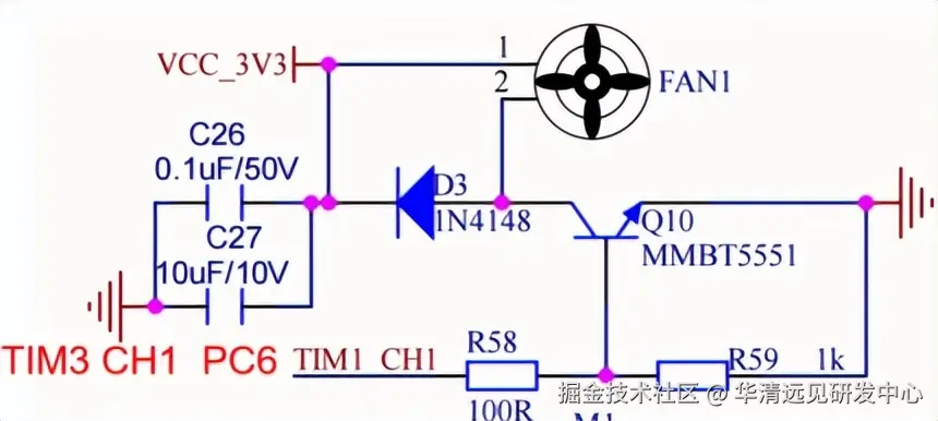 PWM调速:STM32 通过定时器生成PWM信号(如 TIM3_CH1),输出到风扇驱动模块,占空比(0~100%)对应风扇转速;