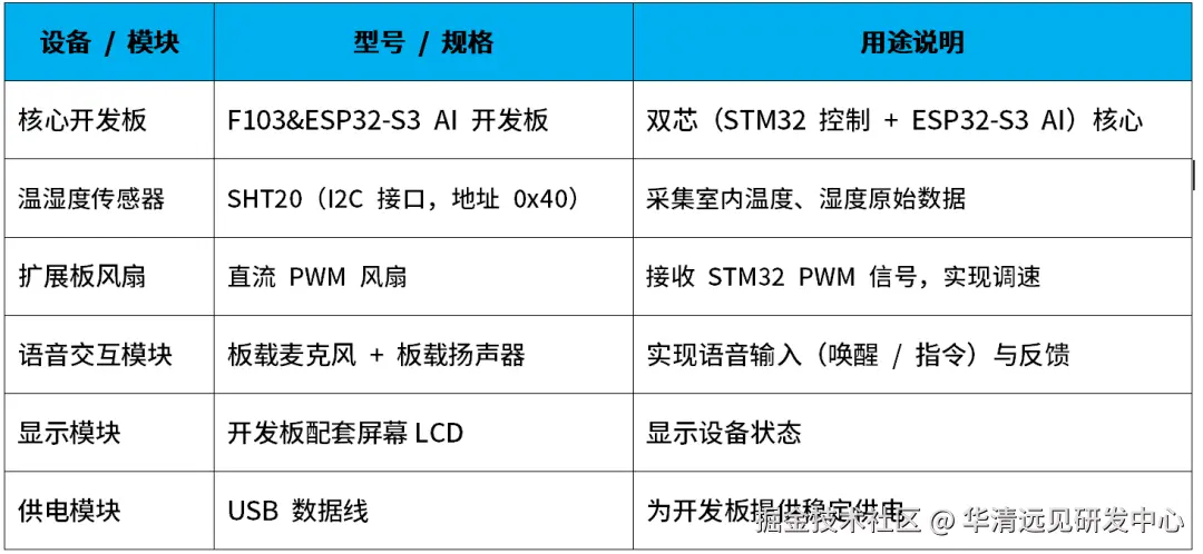 《AI智能风扇》项目硬件平台是华清远见STM32F103&ESP32-S3 AIoT开发板。