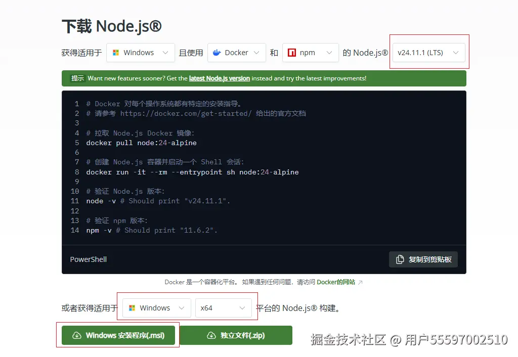- 下载 v24.11.1(LTS) 版本(长期支持版,更稳定)