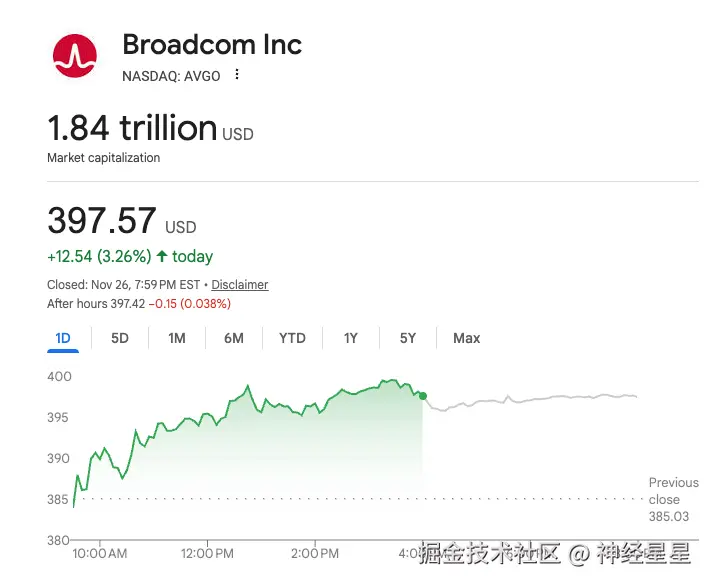 截至 11 月 27 日,Broadcom 市值达 1.84 万亿美元